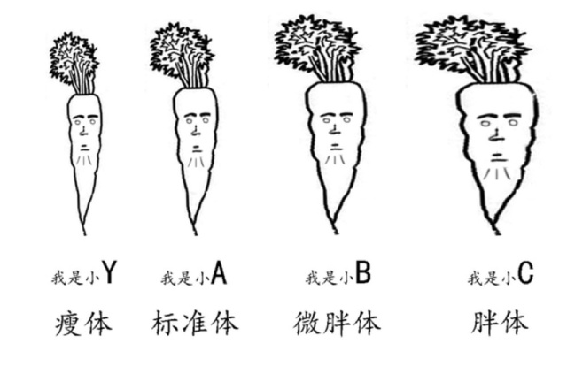 人的体型一般会分成四类,其实这四个字母是用来表示人的体型的——Y(偏瘦)、A(正常)、B(偏胖)、C(肥胖)。